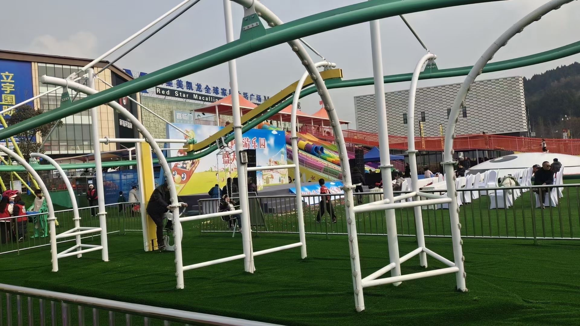 長(zhǎng)2.4米寬2.4米高2米可定制尺寸鋼材:底座80*80、扶手立柱40*60和40圓管、滾筒使用40*40、30*50、側(cè)面防護(hù)32圓管、滾筒板使用25毫米防腐木使用沉頭螺絲固定